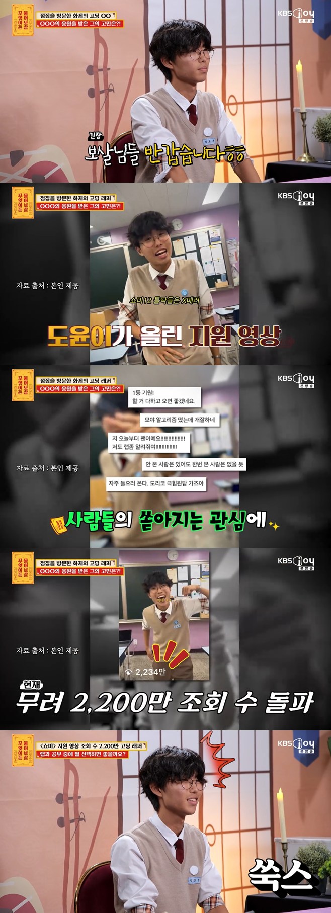 19ÀÏ ¹ã ¹æ¼ÛµÈ KBS JOY ¿¹´ÉÇÁ·Î±×·¥ ¡®¹«¾ùÀÌµç ¹°¾îº¸»ì¡¯¿¡¼­´Â MC À̼ö±Ù, ¼­ÀåÈÆ ÁøÇà ¾Æ·¡ ·¡ÆÛ ÀÌ¿µÁö ÀÀ¿øÀ» ¹ÞÀº °íµù ·¡¼­ ¡®µµÀ±¡¯ ±ºÀÇ °í¹ÎÀÌ °ø°³µÆ´Ù.