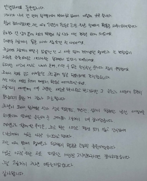 ±×´Â "ÇÏÁö¸¸ ½Ã°£ÀÌ Áö³ª°í ³ªÀ̰¡ µé¸ç ¾î¿ ¼ö ¾ø´Â Çö½ÇÀûÀÎ ¹®Á¦¿Í ¸¹ÀÌ ºÎµúÇû´Ù"¶ó¸ç "Á¤¸» ±æ°í ¾î·Á¿ü´ø °í¹Î ³¡¿¡ ÆÀÀ» Å»ÅðÇϱâ·Î °áÁ¤Çß´Ù. Àú´Â ÀÌÁ¦ »õ·Î¿î °÷¿¡¼­ ¹è¿ì·Î¼­ Ȱµ¿À» À̾ º¸·Á ÇÑ´Ù"¶ó°í ¾Ë·È´Ù.