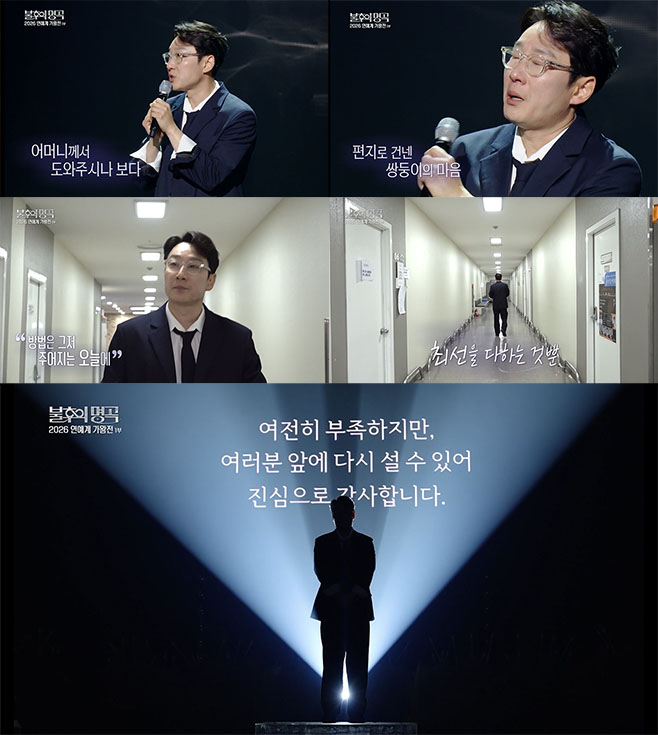 Áö³ 28ÀÏ KBS2 ¡®ºÒÈÄÀÇ ¸í°î¡¯ ³» ¡®2026 ¿¬¿¹°è °¡¿ÕÀü¡¯ ƯÁý¿¡ ¹æ¼ÛÀÎ ÀÌÈÖÀç°¡ Ã⿬Çß´Ù. ¹«´ë¿¡ ¿Ã¶ó ÃÖÈ£¼·ÀÇ ¡®¼¼¿ùÀÌ °¡¸é¡¯À» ºÎ¸¥ ±×´Â, ³ìȸ¦ ¾ÕµÎ°í °¡À§¿¡ ´¸± Á¤µµ·Î º¹±Í¸¦ µÎ°í º¹ÀâÇÑ ½É°æÀ̾úÀ½À» ¹àÇû´Ù. ±×·² ¼ö¹Û¿¡ ¾ø´Â °Ô ¹æ¼Û¿¡ Ã⿬ÇÏ´Â ÀÌÈÖÀ縦 ¹Ù¶óº¸´Â ´ëÁßÀÇ ½Ã¼±¿£ ¾ÆÁ÷ ½Î´ÃÇÔÀÌ ¹è¾î Àֱ⠶§¹®ÀÌ´Ù.
