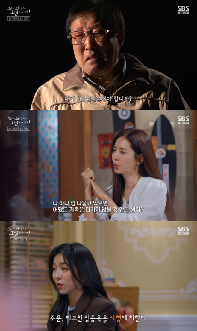 Á¤Á¾¿íÀº ¾ð·Ð ÀÎÅͺ信¼ »ç°Ç ´ç½Ã ¾Æ¹öÁö¿Í ³ª´« ´ëÈ¿¡ ´ëÇØ "°¡Á·Àº »ì¾Æ¾ß ÇÒ °Å ¾Æ´Ï³Ä°í ÇÏ´õ¶ó. ³Ê´Â ÀÌ·¸°Ô °í»ýÇϰí Á×Àº µ¿»ýÀº ¾î¿ ¼ö ¾øÁö¸¸ ¿ì¸® °¡Á·Àº »ì¾Æ¾ß ÇÏÁö ¾Ê³Ä°í ÇÏ´õ¶ó. ³ª¸¦ ´Þ·¡´õ¶ó. Á¦¹ß ÀÔ ´Ù¹°¾î¶ó"°í ¸»Çß´Ù. Á¤Á¾¿íÀº "³»°¡ ¿Ö »ìÀÎÀ» ÇØ¾ßÇϳÄ. Àΰ£ÀÇ À±¸®·Î½á µµÀúÈ÷ ÀÖÀ» ¼ö ¾ø´Â ÀÏÀÌ´Ù"¶ó°í ¸»ÇÏ¸ç ¿ï¾ú´Ù.